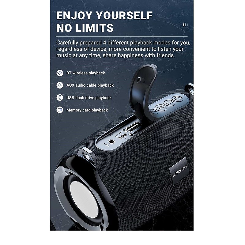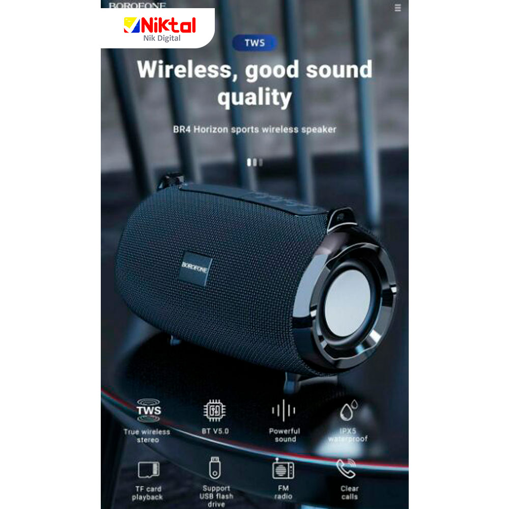 اسپیکر BR4 بروفون محصولی از کمپانی بزرگ بروفون است که در بازارهای بین المللی از جمله ایران توزیع میگردد اسپیکر BR4 بروفون از ورژن بلوتوث 5 پشتیبانی می کند و این امکان را به شما می دهد که از طریق بلوتوث با تلفن همراه و هر دستگاه هوشمندی که دارای بلوتوث است به آن متصل شوید و موسیقی دلخواه خود را پخش کنید. اسپیکرBR4 بروفون از فناوری A2DP.AVRCP.HFP پشتیبانی می کند . توانی خروجی اسپیکر BR4 بروفون 5وات است، در نتیجه صدای خروجی خوبی را به واسطه توان خروجی و بلندگوهای آن شاهد خواهید بود. اسپیکر BR4 بروفون دارای پورت درگاهی برای استفاده از TF CARDوUSB FLASH و پورت AUX نیز هست و در صورتی که پخش کننده شما قابلیت بلوتوث نداشته باشد می توانید از آن استفاده نمایید.اسپیکر BR4 بروفون دارای باتری با ظرفیت 500 میلی آمپر می باشد که این قابلیت را ایجاد می کند پس از 1.5 ساعت شارژ کامل بتوانید تا 2 ساعت با آن به موسیقی گوش فرا دهید.