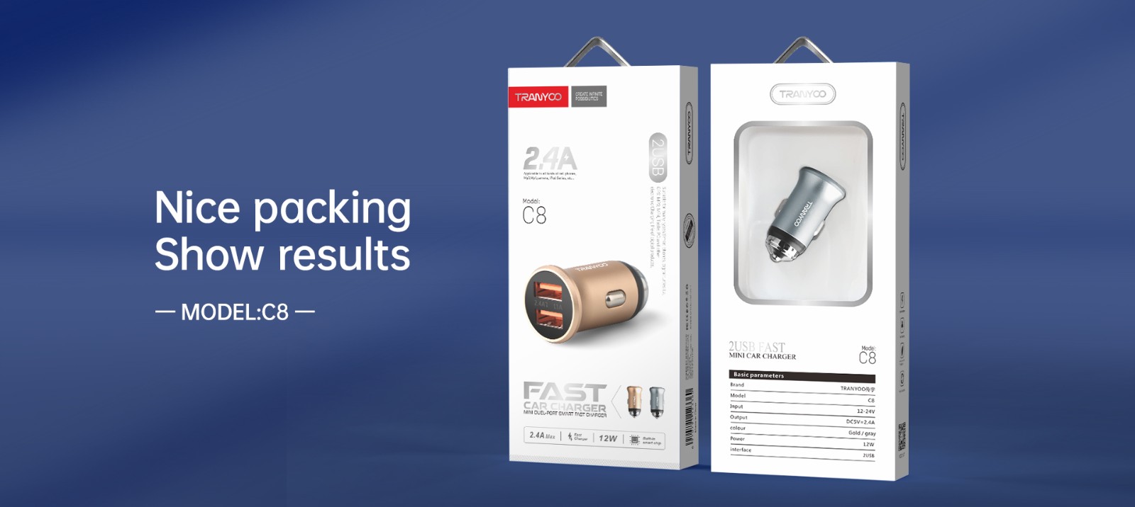 شارژر فندکی تراینو مدل Tranyoo C8 با امکاناتی مانند جلوگیری از افت ولتاژ، حفاظت از دستگاه شما در برابر اتصال کوتاه و سیستم حفاظت از گرمای بیش از حد، در برابر هر گونه خطر احتمالی در مورد ایمنی و دوام دستگاه شما تضمین میکند.فندکی Tranyoo C8 به همراه یک کابل iPhone(Lightning) به طول 1.2 متر میباشد. جریان خروجی این فندکی 2.4 آمپر و ولتاژ خروجی 5 ولت و دارای دو پورت USB میباشد.در کل شارژر فندکی C8 از شرکت ترانیو، یک گزینه عالی برای شارژ سریع و آسان دستگاههای دیجیتالی خود در خودرو است.با این شارژر فندکی، میتوانید دستگاه خود را در هر لحظه که نیاز دارید شارژ کنید و به لحاظ عملکرد و ایمنی، بهترین پاسخ را برای نیازهای شارژ خودرویی خود ارائه دهید.بدنه شارژر از جنس آلومینیوم و طراحی جمع و جوری دارد و به آسانی و بدون هیچ مزاحمتی قابل استفاده در همه خودرو ها می باشد.