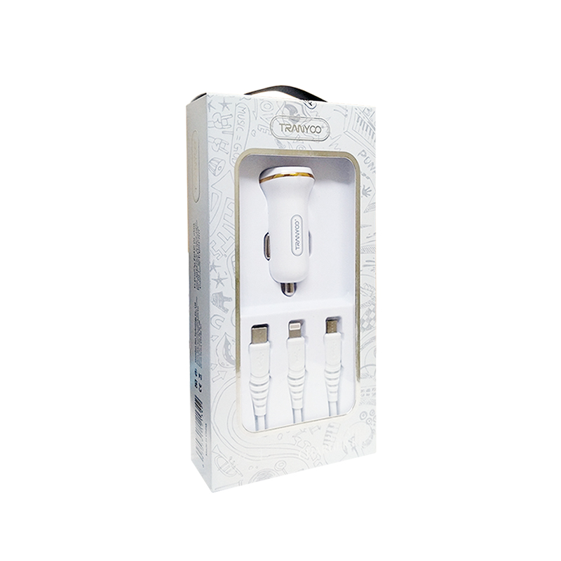 شارژر فندکی ترانیو VS1 یک مدل بسیار کامل با کارآیی بالاست.این مدل دارای طراحی شیک و زیباییت که به بهتر شدن جلوه ی داخلی ماشین نیز کمک می کند.در بالای شارژر VS1 دو درگاه خروجی قرار گرفته است و این درگاه های دارای شدت جریان خروجی 2.4 آمپر هستند وبرای Fast Charge انواع موبایل و تبلت مناسب هستند.درون بسته بندی این مدل 1 عدد کابل سه سر لایتنینگ،تایپ سی،میکرو قرار دارد که شما را از نیاز همراه داشتن مدل های مختلف کابل آسوده می نماید.