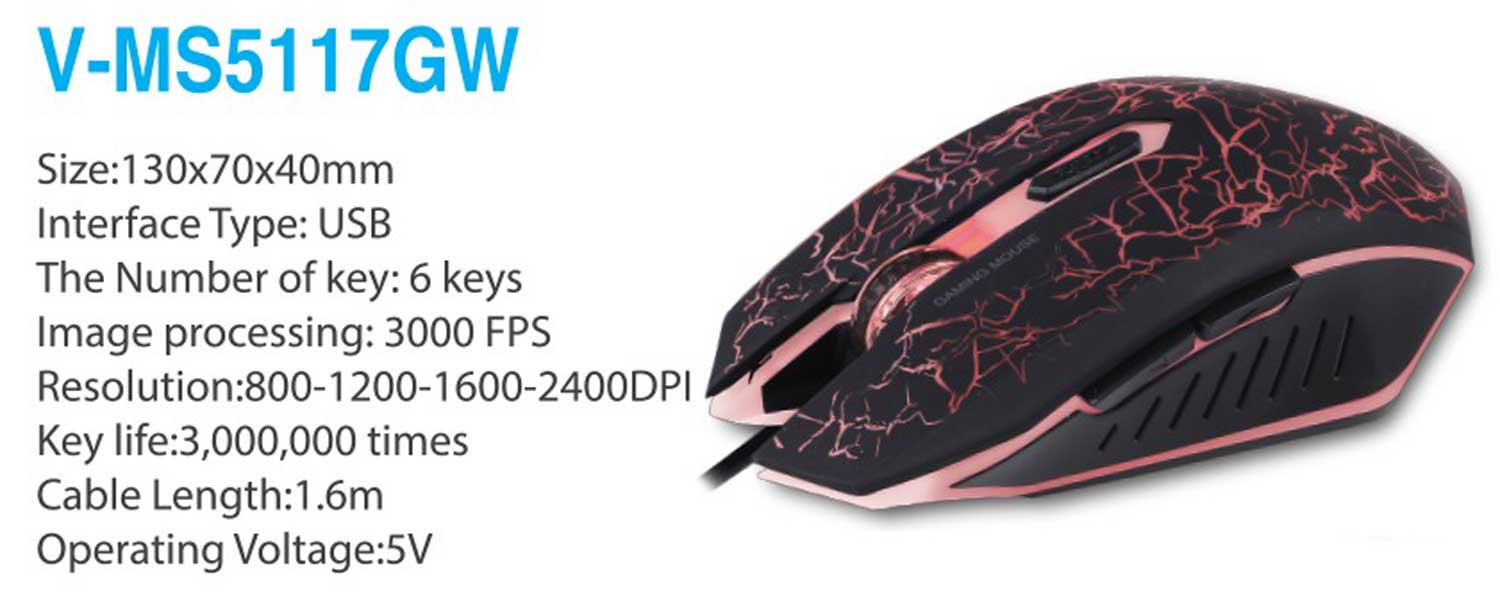 اگر گیمر هستید و یا به طور کلی تایم زیادی را صرف بازی های کامپیوتری و… می کنید، قطعا ملزومات گیمینگ هم مورد مصرف شما هست؛ وریتی با ماوس گیمینگ خود با عنوان Verity V-MS5117G به خوبی محصولی را در اختیار شما می گذارد که امکانات یک ماوس مخصوص بازی را به شما می دهد و در کنار آن رابط کاربری بسیار مناسبی را نیز داراست. روی این ماوس مخصوص بازی 6 کیلد تعبیه شده تا کاربری شما را به هر نحوی راحت و آسان کند. کلیدهای Backward و Forward از جمله این دکمه ها هستند و کلیدی مخصوص برای عوض کردن میزان دقت ماوس که به شدت به کار می آید و عملکرد شما را به خوبی ارتقا می بخشد. میزان دقت V-MS5117G بین چهار حالت قابل تغییر است و شما می توانید این مقدار را بین یکی از اعداد 800Dpi – 1200Dpi – 1600Dpi – 2400Dpi تنظیم کرده و مورد استفاده قرار دهید. این بازه از تنظیم میزان دقت ماوس گسترهی خوبی را شامل می شود و برای بازی کردن و… آپشن بسیار مناسبی محسوب می شود.