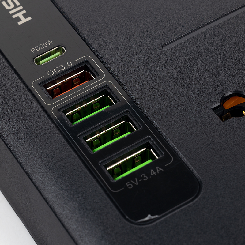 چند راهی برق هیسکا مدل CH-5520 به تکنولوژی AUTO ID مجهز است که به طور خودکار نوع دستگاه متصل شده را شناسایی کرده و شدت جریان مناسب را برای شارژ سریعتر و بهینهتر تنظیم میکند.