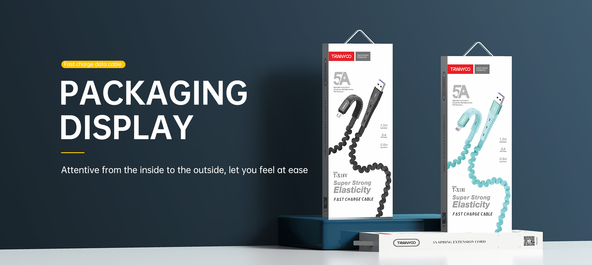 ترانیو X18 حالت کشسانی خاصی داشته و هر3 پورت کابل ها را دارد که برای انتقال اطلاعات و شارژ، مناسب می باشد. Tranyoo از جنس پارچه ضخیم بافته شده در ساخت روکش این کابل استفاده کرده که در برابر کشیدگی، پارگی و … مقاومت بالایی از خود نشان می دهد و 120 سانتی متر، طول سیم آن است.کانکتور های آن از جنس آلیاژ آلومینیوم ساخته شده و در برابر سایش، ضربه و فشار استحکام بالایی به همراه دارند.حالت کشسانی این کابل را از بقیه کابل ها متمایز کرده است.علاوه بر این کابل X18 دارای سیستم پروتکشن قوی است که میتواند جلوی خرابی دستگاه شما را در هنگام شارژ بگیرد.در کل، این کابل شرکت ترانیو با ساختار مقاوم و با کیفیت، سیستم پروتکشن قوی، و طول کابل انعطاف پذیر به عنوان یکی از بهترین گزینههای برای شارژ دستگاههای الکترونیکی در سه مدل اندروید و تایپ سی و آیفون در بازار به شمار میرود.این کابل برای شارژکردن بیشتر پاوربانکها هم به کار میرود؛ همچنین با توجه به امکان انتقال اطلاعات در این کابل بهراحتی میتوانید انواع فایلهای خود را به اشتراک بگذارید.