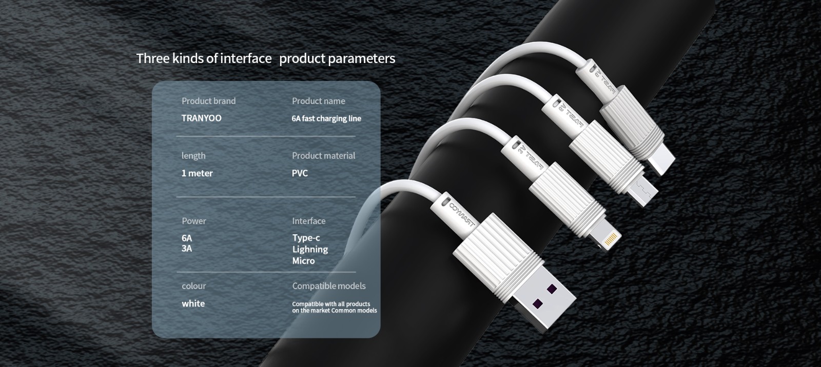 کابل شارژ ترانیو Tranyoo S13 یکی از بهترین کابلهای شارژر با تکنولوژی QC 3.0 برای شارژ سریع دستگاههای مختلف مانند تلفنهای همراه، تبلت و دیگر دستگاههای دیجیتال میباشد.این کابل به شما این امکان را میدهد تا دستگاه خود را با سرعت بالا و به طور کامل شارژ نمایید.کابل S13 دارای طول 1 متر و این کابل دارای سه نوع پورت مختلف شامل: پورت لایتنینگ (آیفون)، پورت میکرو USB (اندروید) و پورت تایپ سی برای اتصال به دستگاههای مختلف میباشد.پوشش PVC و ظاهری زیبا و خاص و در عین حال مقاومت و دوام بالا در برابر خش و ضربه برخوردار است.با این کابل شما از سرعت شارژ بالا، پشتیبانی از QC 3.0 و انتقال دادههایی با سرعت بالا بهره خواهید برد.کانکتورهای کابل شارژ S13 از جنس فلزی ساخته شده که در قسمت انتهایی مجهز به محافظی پلاستیکی جهت جلوگیری از آسیب رسیدن به کابل هنگام خم شدن وجود داشته و منجر به افزایش طول عمر کابل خواهد شد.این محصول دارای قابلیت فست شارژ با حداکثر شدت جریان عبوری 5 آمپر میباشد که دستگاههایی که از این قابلیت پشتیبانی میکنند را با سرعت بالا شارژ مینماید.