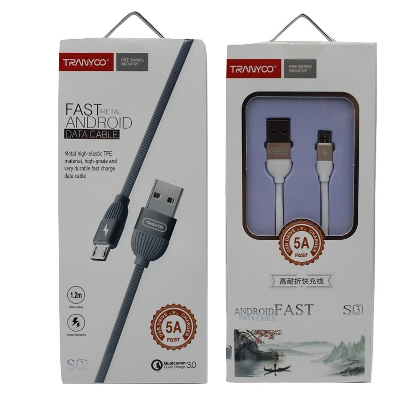 کابل شارژ ترانیو Tranyoo S3 یکی از بهترین کابلهای شارژر با تکنولوژی QC 3.0 برای شارژ سریع دستگاههای مختلف مانند تلفنهای همراه، تبلت و دیگر دستگاههای دیجیتال میباشد.این کابل به شما این امکان را میدهد تا دستگاه خود را با سرعت بالا و به طور کامل شارژ نمایید.کابل S3 دارای طول 1.2 متر و این کابل دارای سه نوع پورت مختلف شامل: پورت لایتنینگ (آیفون)، پورت میکرو USB (اندروید) و پورت تایپ سی برای اتصال به دستگاههای مختلف میباشد.جنس سوکت های این محصول از فلز مقاوم بوده و در قسمت اتصال سوکت ها به سیم که محل آسیب پذیر کابل های شارژر می باشد، از پلاستیک با کیفیت استفاده شده که در برابر آسیب های احتمالی از مقاومت بالایی برخوردار می باشد.همچنین طول کابل شارژ TRANYOO مدل S3 micro-USB تا ۱٫۲ متر میرسد.کابل S3 از شرکت Tranyoo مانند سایر محصولات این برند با ارائه کیفیت بالا و پایداری در عملکرد، برای کاربرانی که به دنبال بهترین هستند، یک گزینه مناسب برای شارژ سریع و انتقال دادههای دستگاههای مختلف است.