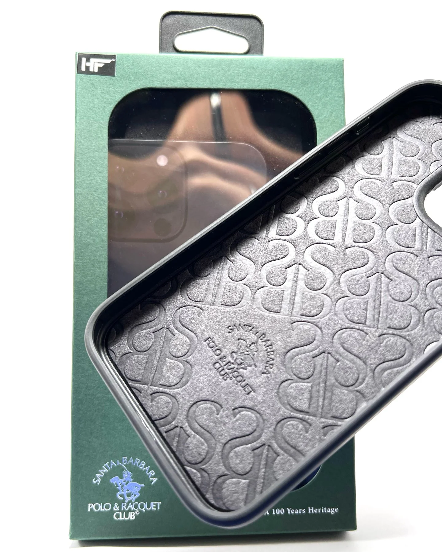 قسمت داخلی قاب با پارچه ابریشمی درجه یک طراحی شده و مخفف برند سانتا باربارا پولو ( SBPRC ) روی آن حک شده است تا مانع ایجاد خط و خش بر روی درب پشت گوشی شود.