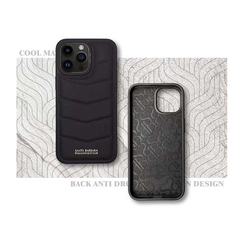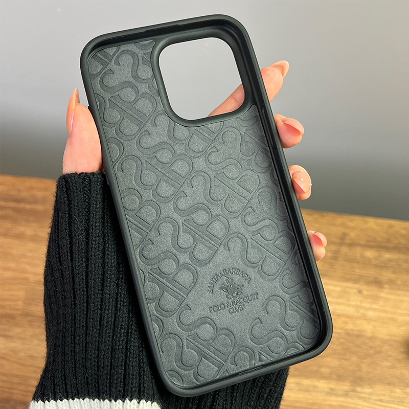 قسمت داخلی قاب با پارچه ابریشمی درجه یک طراحی شده و مخفف برند سانتا باربارا پولو ( SBPRC ) روی آن حک شده است تا مانع ایجاد خط و خش بر روی درب پشت گوشی شود.