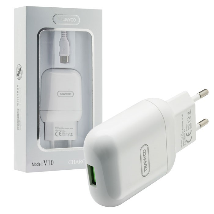 شارژر دیواری فست شارژ V10 امکان اتصال و شارژ کردن گجت های شما توسط کابل میکرو یو اس بی را به ارمغان می آورد. روکش کابل ۱۰۰ سانتی متری همراه کلگی فست شارژ ترانیو V10 از جنس TPE می باشد که مقاومت مناسبی در برابر کشیدگی و پارگی دارد. پورت خروجی USB شارژر دیواری قابلیت ارائه شدت جریان حداکثر ۲٫۴ آمپر را جهت شارژ کردن موبایل، تبلت و … داشته که از شارژ سریع نیز پشتیبانی می کند. تامین منابع انرژی کلگی تک پورت ترانیو هم بر عهده کانکتور ورودی برق آن می باشد که به خوبی با پریز برق ایران EU سازگاری دارد. شارژر دیواری فست شارژ ترانیو مدل V10 با ویژگی های مناسب خود مانند کابل ۱۰۰ سانتی متری با کیفیت، امکان شارژ سریع ۲٫۴ آمپری و عدم نیاز به تبدیل برای اتصال به پریز برق آن را به یک محصول مناسب جهت شارژ کردن گجت های شما تبدیل خواهد کرد.