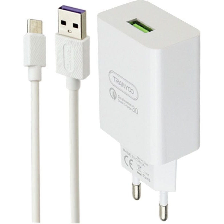 امروزه شارژر های بسیاری در بازار موجود می باشند اما همچنان شارژر های سیمی بیشترین سرعت را دارند و ایمن تر هستند.شارژر SE4 محصولی از کمپانی خوش نام Tranyoo بوده که دارای یک پورت usb بوده و به شما امکان شارژ گوشی موبایل را با سرعت 5V-3.6A را می دهد که سرعت بسیار بالایی برای شارژ گوشی های همراه محسوب می شود.پورت این محصول دارای فناوری Qualcomm 3.0 بوده که در صورتی که گوشی موبایل شما هم دارای این فناوری باشد می توانید گوشی موبایل خود را با سرعت بسیار بالا شارژ کنید و تجریه شارژی با سرعت بالا را داشته باشید.جنس بدنه این شارژر از پلاستیک + ABS و متریال PC بوده که مقاومت بسیار بالایی در برابر ضربه ، فشار و حرارت دارد.داخل پک این محصول یک کابل تایپ سی هم قرار دارد که با استفاده از آن می توانید به راحتی گوشی موبایل خود را شارژ کنید.شما این شارژر را می توانید به صورت مستقیم به پریز های ایران متصل کنید و نباید حتما از تبدیل استفاده کنید.توان کلی این محصول 18 وات می باشد و علت شارژ سریع این محصول هم توان بالای آن می باشد.