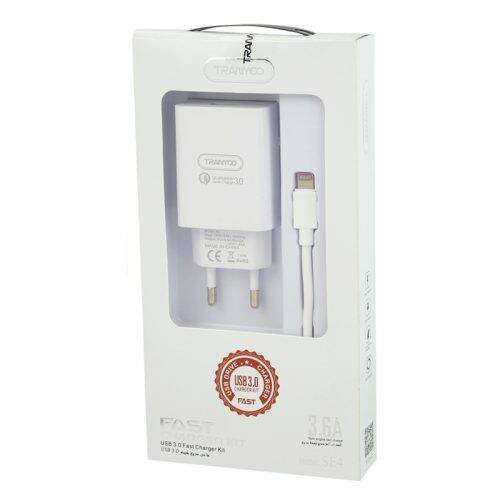 امروزه شارژر های بسیاری در بازار موجود می باشند اما همچنان شارژر های سیمی بیشترین سرعت را دارند و ایمن تر هستند.شارژر SE4 محصولی از کمپانی خوش نام Tranyoo بوده که دارای یک پورت usb بوده و به شما امکان شارژ گوشی موبایل را با سرعت 5V-3.6A را می دهد که سرعت بسیار بالایی برای شارژ گوشی های همراه محسوب می شود.پورت این محصول دارای فناوری Qualcomm 3.0 بوده که در صورتی که گوشی موبایل شما هم دارای این فناوری باشد می توانید گوشی موبایل خود را با سرعت بسیار بالا شارژ کنید و تجریه شارژی با سرعت بالا را داشته باشید.جنس بدنه این شارژر از پلاستیک + ABS و متریال PC بوده که مقاومت بسیار بالایی در برابر ضربه ، فشار و حرارت دارد.داخل پک این محصول یک کابل لایتنینگ هم قرار دارد که با استفاده از آن می توانید به راحتی گوشی موبایل خود را شارژ کنید.شما این شارژر را می توانید به صورت مستقیم به پریز های ایران متصل کنید و نباید حتما از تبدیل استفاده کنید.توان کلی این محصول 18 وات می باشد و علت شارژ سریع این محصول هم توان بالای آن می باشد.