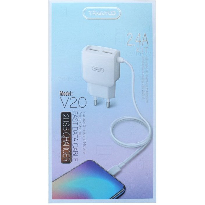 شارژر دیواری فست شارژ V20 امکان اتصال و شارژ کردن گجت های شما توسط کابل میکرو یو اس بی را به ارمغان می آورد. روکش کابل ۱۰۰ سانتی متری همراه کلگی فست شارژ ترانیو V20 از جنس TPE می باشد که مقاومت مناسبی در برابر کشیدگی و پارگی دارد. پورت خروجی USB شارژر دیواری قابلیت ارائه شدت جریان حداکثر ۲٫۴ آمپر را جهت شارژ کردن موبایل، تبلت و … داشته که از شارژ سریع نیز پشتیبانی می کند. تامین منابع انرژی کلگی تک پورت ترانیو هم بر عهده کانکتور ورودی برق آن می باشد که به خوبی با پریز برق ایران EU سازگاری دارد. شارژر دیواری فست شارژ ترانیو مدل V20 با ویژگی های مناسب خود مانند کابل ۱۰۰ سانتی متری با کیفیت، امکان شارژ سریع ۲٫۴ آمپری و عدم نیاز به تبدیل برای اتصال به پریز برق آن را به یک محصول مناسب جهت شارژ کردن گجت های شما تبدیل خواهد کرد.