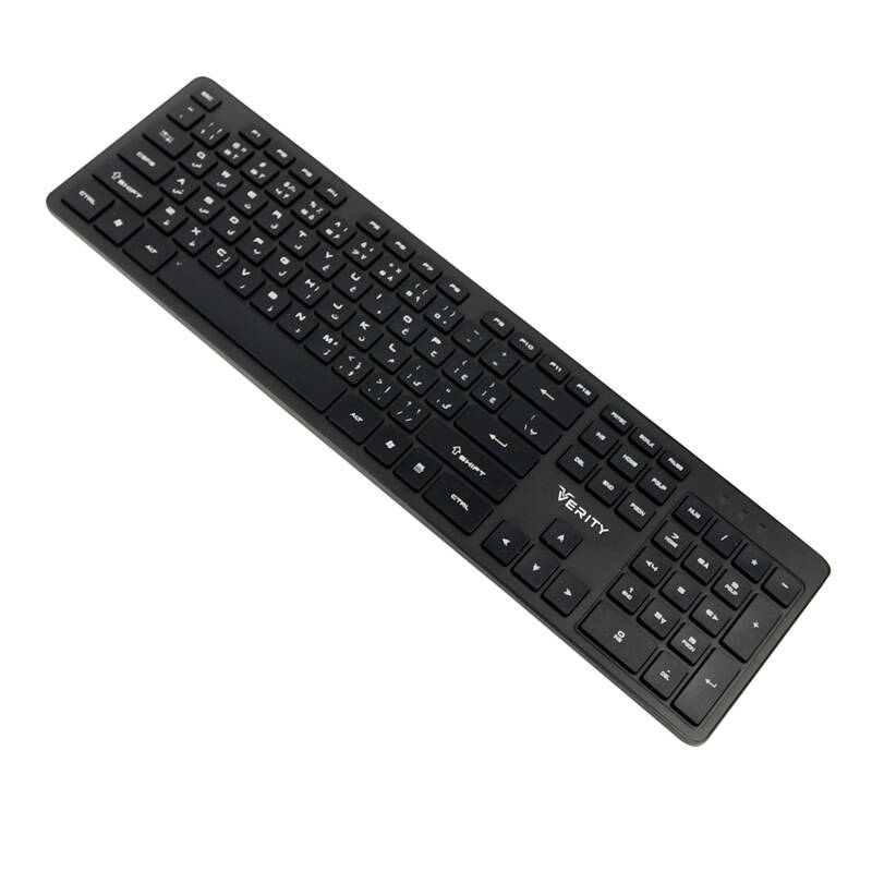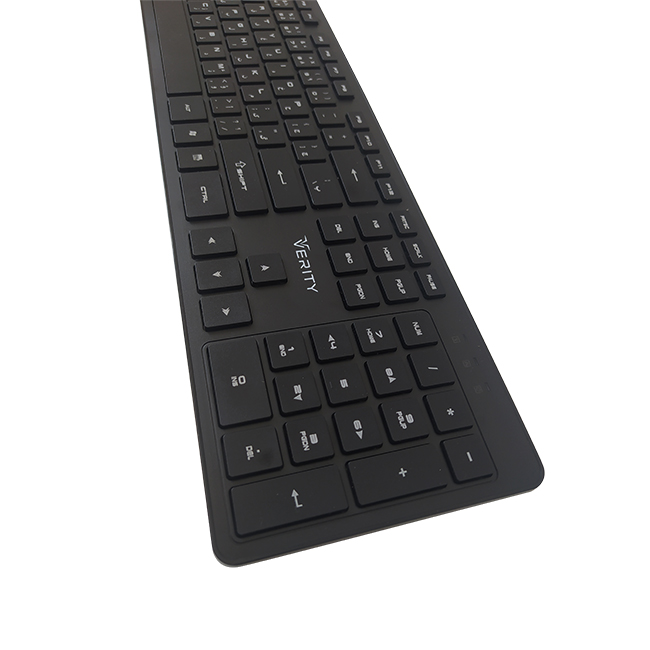 کیبورد وریتی مدل V-KB6125W، تولید برند نام آشنای وریتی در ابعاد 29.5*125*439 و وزن 448 گرم به بازار عرضه شده است. این محصول از نوع بی سیم و با طراحی آرگونومیک مناسب برای استفاده در کاراهای روزمره و اداری می باشد. خرید این کیبورد به کاربرانی که از به هم پیچیدگی، گره خوردگی کابل و به هم ریختگی میز خود خسته شده اند، توصیه می شود. تعداد کلید اصلی این کیبورد 104 عدد که نرم و روان است و با عملکرد کاملا بیصدا می باشد. کیبورد وریتی با حروف فارسی حک شده بر روی کلید ها برای راحتی کاربران فارسی زبان هنگام تایپ طراحی شده است. این محصول علاوه بر داشتن طراحی نو و خاص، داشتن سیستم مهندسی و آرگونومیک بودن کیبورد، صفحه کلیدی نسبتا تخت برای راحتی کاربر هنگام تایپ می باشد که به کاربر این اجازه را می دهد به مدت طولانی و بدون ایجاد خستگی و آسیب به دست بتواند تایپ کند.