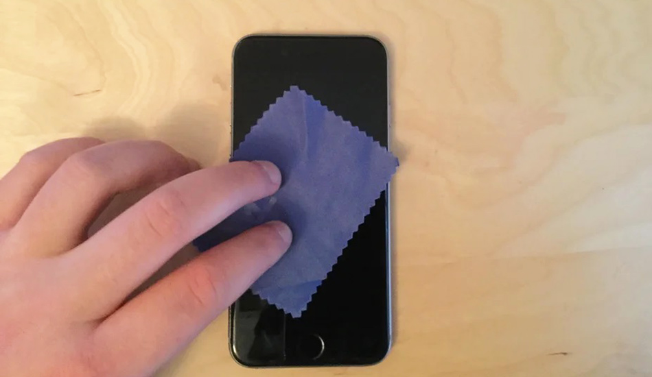 پس از جدا کردن گلس، نوبت به تمیز کردن نمایشگر گوشی می رسد. این مرحله چندان سخت نیست و تنها کمی دقت و حوصله می طلبد. وجود گرد و غبار بر روی گلس موجب می شود چسب گلس به درستی عمل نکند، بنابراین هر چقدر نمایشگر تمیزتر باشد، چسبیدن گلس ساده تر انجام می شود. برای تمیز کردن نمایشگر گوشی می توانید از اسپری های کلینر یا پاک کننده و پارچه های نرمی مانند پارچه عینک استفاده کنید اما دقت داشته باشید که پارچه باید کاملا تمیز باشد.