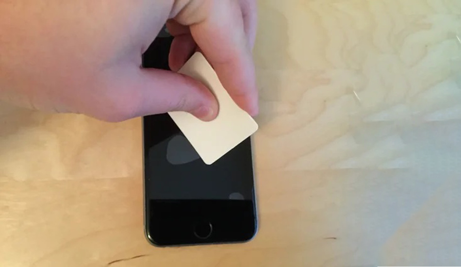 می توانید از یک کارت عابر بانک هم برای از بین بردن حباب ها کمک بگیرید. پس از اینکه تمام حباب ها از بین رفت، به وسیله پارچه تمام سطح گلس را به آرامی فشار دهید تا چسب به صورت کامل جذب  نمایشگر شود و با گذر زمان حبابی به وجود نیاید. پیشنهاد می شود قبل از اینکه گوشی را داخل قاب یا گارد قرار دهید، 1 یا 2 ساعت به آن فرصت دهید تا شاهد به وجود آمدن حباب نباشید.